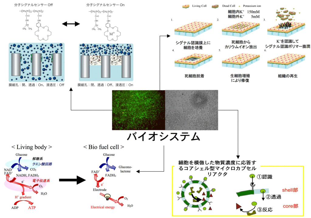 Based on the systematic material design concept, we are developing both novel materials for energy process such as fuel cell and molecular signal stimuli-responsive materials inspired by biosystem. We consider that this approach is suitable for other various material developments.