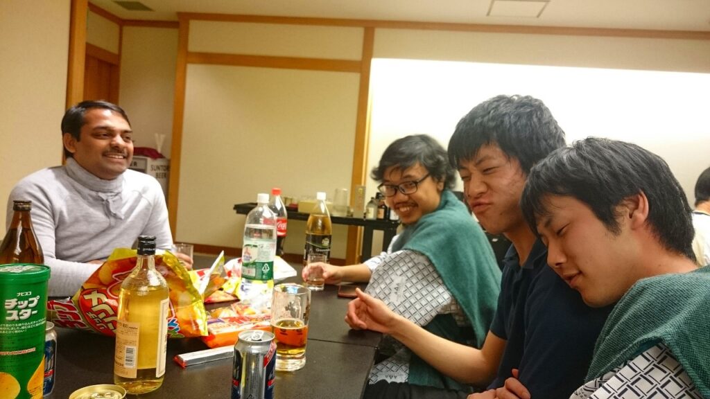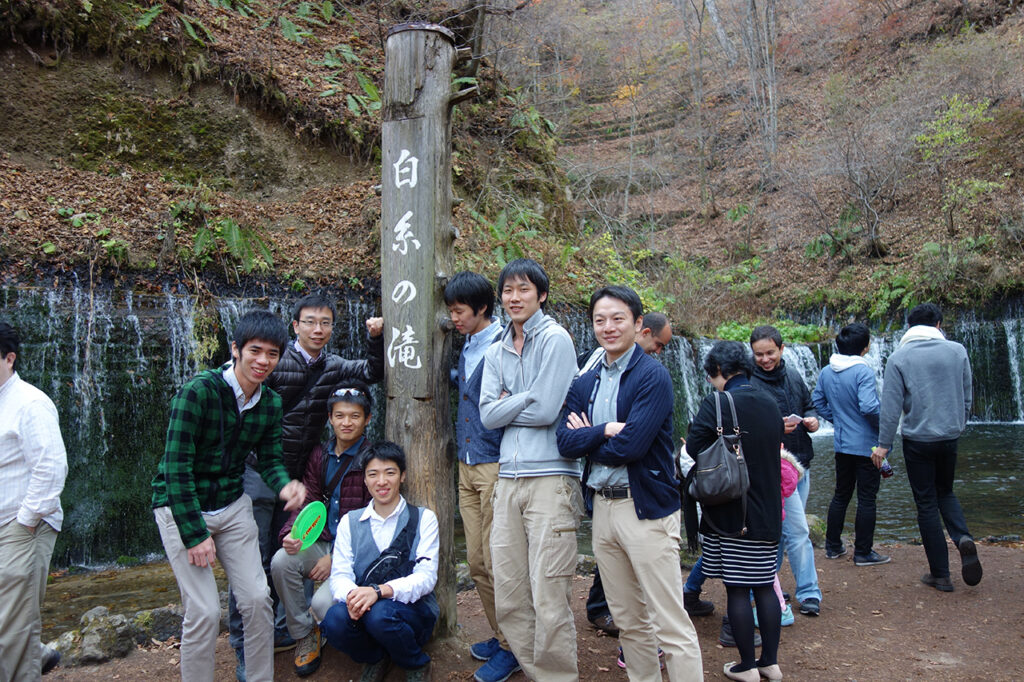 2015 研究室旅行 今年も研究室旅行に行ってまいりました。2泊3日で軽井沢、サッカー、草津、伊香保と盛りだくさんでした! 2日目 サッカー場にて OBの方々からの差し入れです。有難うございました。 空気がおいしかったです。 一発で景品を2個手に入れる奥山くん チャップリン 真面目な顔して宙に浮く写真 笑いを堪えるのが大変でした。